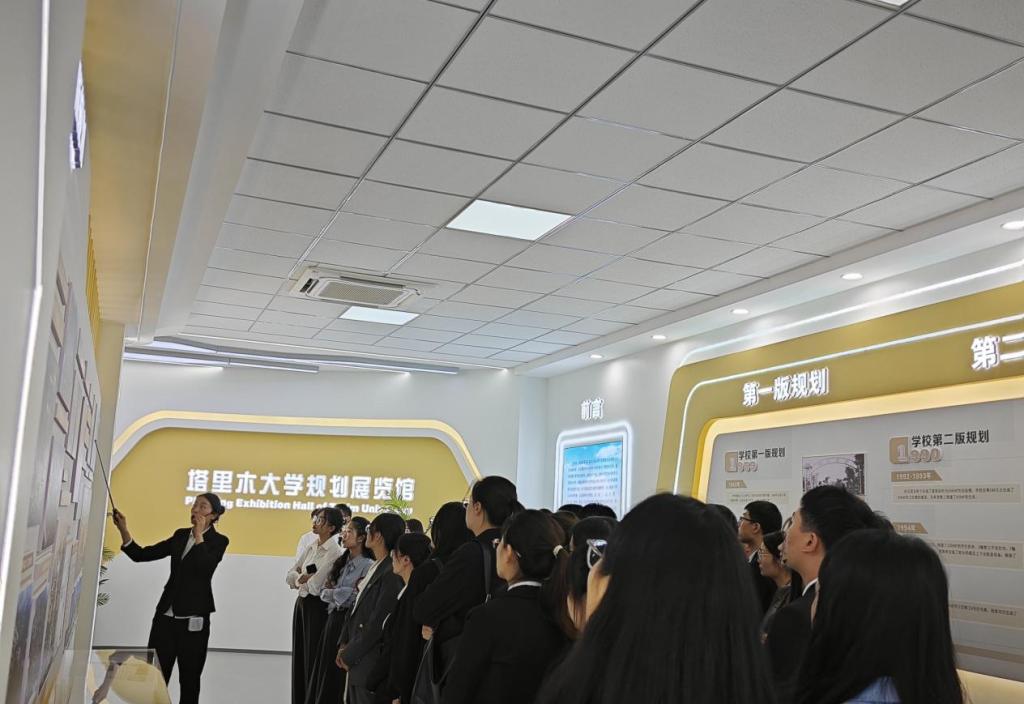 在讲解员的引领下,新教师们走进了1958年的塔大,从最开始被称为“独楼大学”一步步迈向教学、生活、学习功能兼备的现代化校园,从地窝子、土坯房转换到各类标志性建筑遥相呼应的新老校区,规划展览馆将学校总体建筑、单体建筑、教育事业的规划变迁呈现在了新教师的面前。