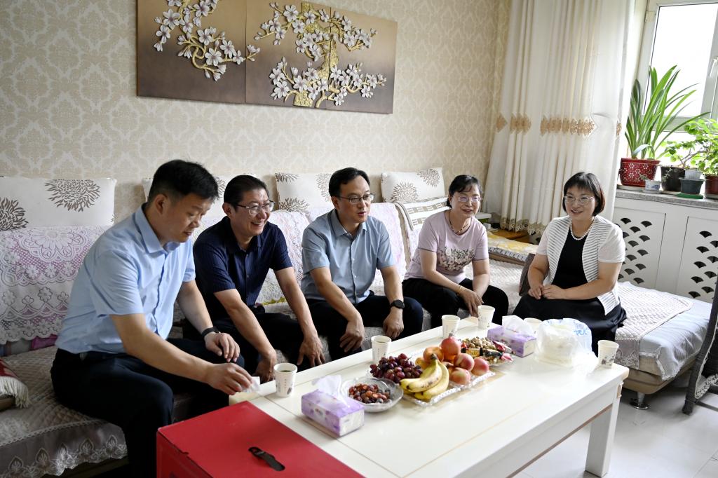 党委副书记、校长闫祥林,党委副书记于军,党委常委、副校长林松涛、汤智辉,党委常委、纪委书记郑麟,党委常委、副校长万传星、谢建新,党委常委、组织部部长张伟信,带着学校党委和广大师生的深情厚谊,看望慰问暑期坚守工作岗位一线的教职员工和退役军人,对大家的坚守、付出、奉献表示感谢。相关部门领导陪同。