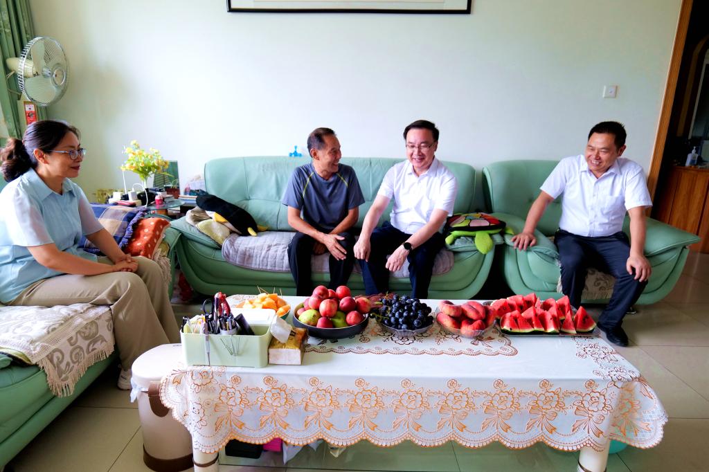校领导来到郑国林、邢金明、白泳飞、叶斌、李江、程勇的家里,向退役军人致以节日的问候和诚挚的祝福,希望大家继续保持昂扬的工作状态,以军的纪律和兵的作风,以退伍不褪色的作风,为学校建设发展贡献智慧和力量。
