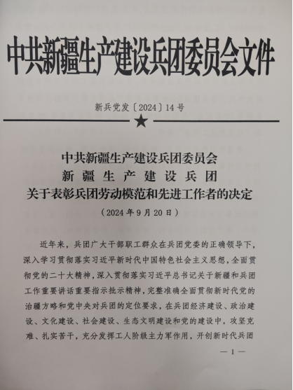 日前,中共新疆生产建设兵团委员会、新疆生产建设兵团联合下发“关于表彰兵团劳动模范和先进工作者的决定”,值兵团成立70周年之际,决定授予陈静等70名同志“兵团劳动模范”称号,授予张万里等30名同志“兵团先进工作者”称号。开云app体育网页登录不上 农学院万素梅教授位列其中,获“兵团先进工作者”称号,享受兵团级劳模待遇。