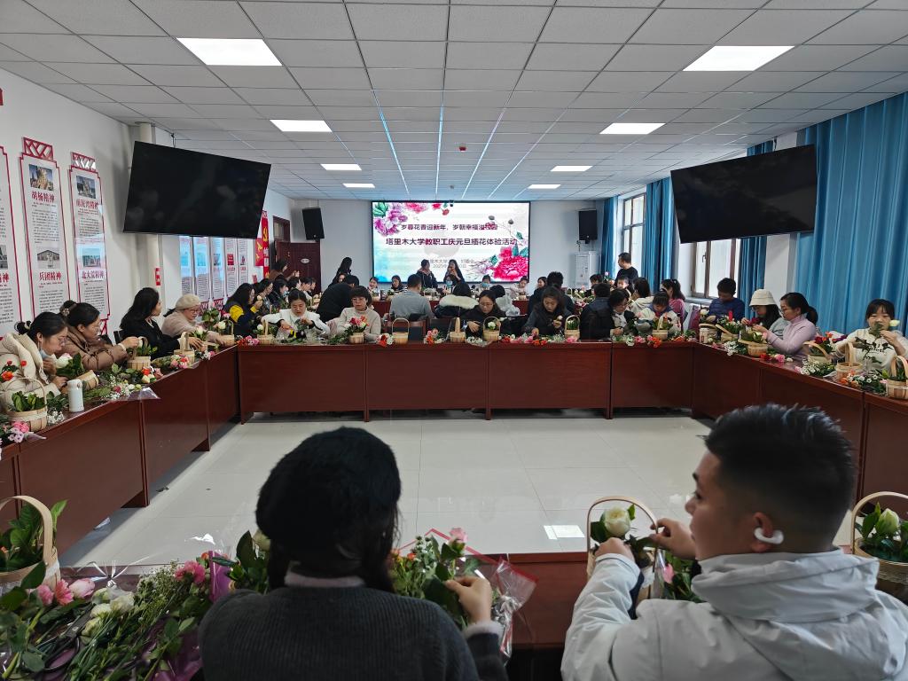 12月30日上午,学校工会、妇委会在工科实训楼1号会议室举办“岁暮花香迎新年,岁朝幸福溢校园”庆元旦教职工插花体验活动。校工会主席、妇委会主任张燕飞,学校工会委员、妇委会委员、基层工会主席、委员、教职工代表70余人参加活动。