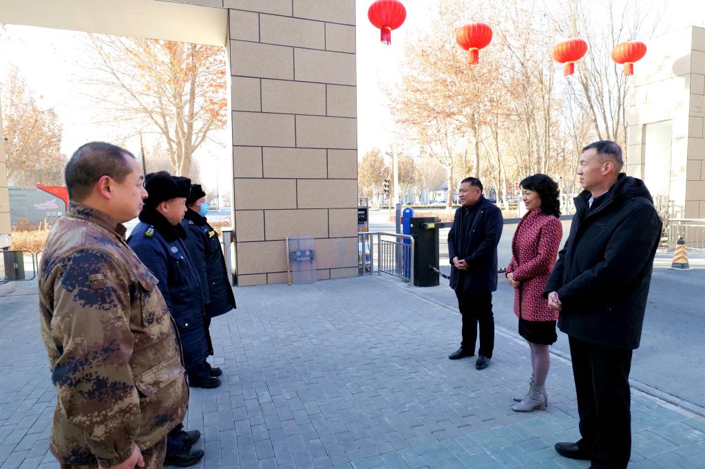 张爱萍先后来到保卫部、派出所、后勤保障中心、行政楼、北门、校医院、南门等处,向大家送上新春祝福并表达诚挚问候。每到一处,仔细询问大家的身体状况、值班情况和生活起居,详细了解工作需要和困难,充分肯定了大家过去一年为学校建设付出的辛勤努力和取得的工作成绩,叮嘱大家做好值班调休和安全保障。祝愿大家新年新气象,希望大家在新一年继续弘扬和践行好胡杨精神,守土尽责、锐意进取、真抓实干,在平凡岗位上创造不平凡的业绩,振奋龙马精神,以龙腾虎跃、鱼跃龙门的干劲闯劲,爱校荣校、拼搏奉献,为开启建设兵团特点南疆特色一流大学新征程作出新贡献。