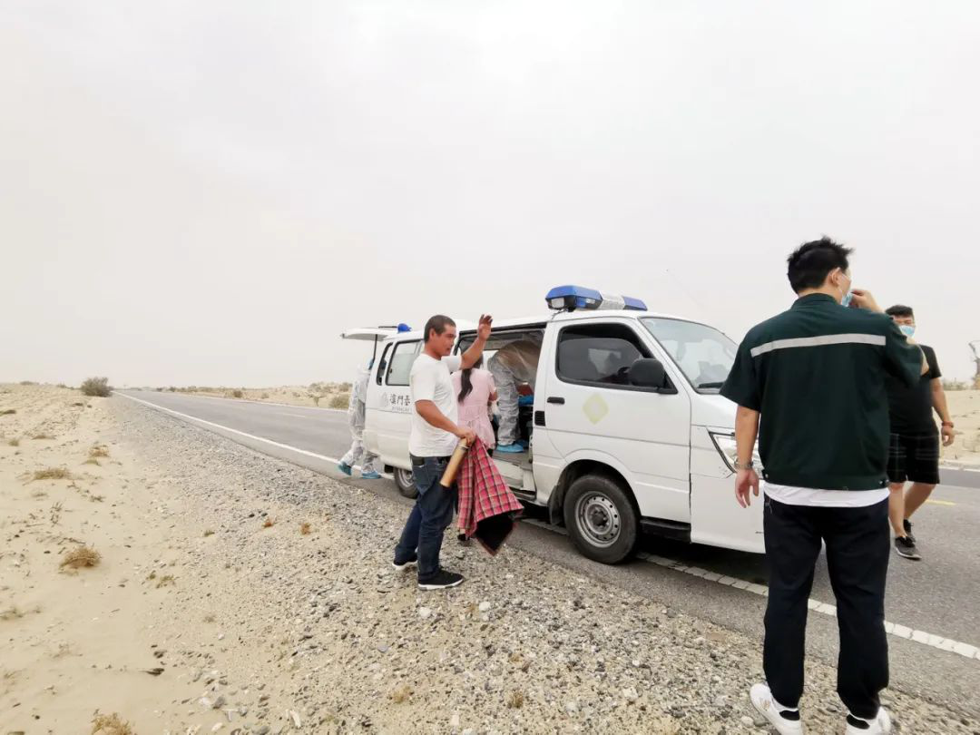 经询问得知,车祸刚发生不久,1名年轻女子脸部、胳膊血流不止,需要马上送医,但车祸发生在沙漠公路深处,交警、救护车无法及时赶到,情况十分紧急。张利莉立即与阿拉尔医院急救中心取得联系,并决定将受伤夫妻安排在随行车上,迅速送往阿拉尔医院,还为受伤较轻的司机留下了水和食物。17时左右,在阿和沙漠公路(G580)240公里处与师市120指挥中心急救车相遇,伤员被转运到阿拉尔医院救治。