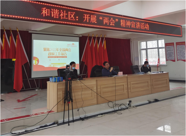 第四师可克达拉市驻霍尔果斯市伊车嘎善锡伯乡和谐社区工作队干部和社区“两委”成员认真准备宣讲内容,积极向社区居民宣传全国两会精神。