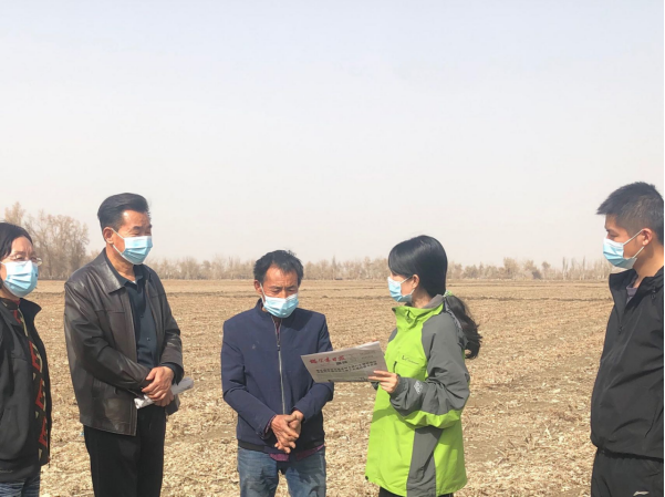 中华联合财产保险股份有限公司新疆分公司驻第三师54团1连工作队干部和连队“两委”成员走进场院和田间地头,帮助职工保养农机、清理残膜、破埂整地、修整渠道,积极引导他们进行保护性耕作。