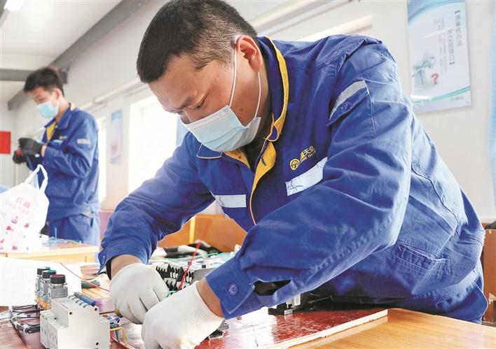 图③ 新疆天业(集团)有限公司员工在职工职业(电工)技能大赛中(资料图片)。天业集团通过定期举办职工技能大赛,营造“学技能、练技能、比技能”的良好氛围,为企业高质量发展夯实技能人才基础。刘蓓 摄