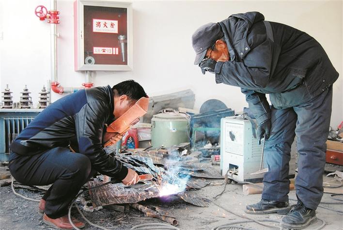 图② 在十三师职业技术学校电工教室,学员在师傅(右)的指导下进行实操练习(资料图片)。谢增杰 摄