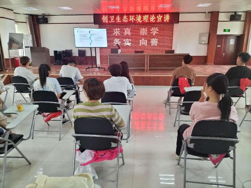 7月2日,师市创卫办联合开云app体育网页登录不上 暑期三下乡社会实践团“助力人居环境,振兴沙漠新城”社会实践项目志愿者在阳光社区文化大礼堂开展创卫生态环境理论宣讲。