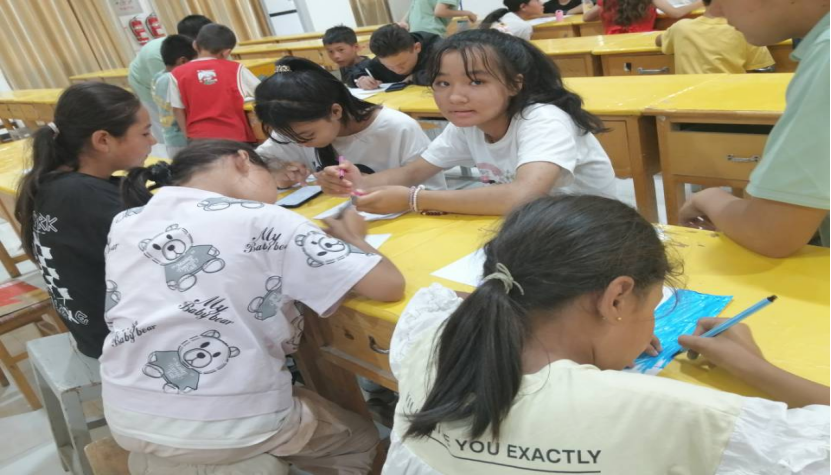 为团队成员与孩子们相互自我介绍活动开始,团队成员们一对一、多对一,面对面、手把手地悉心教学,尽己所能为孩子们答疑解惑,点亮理想的灯,照亮前行的路。