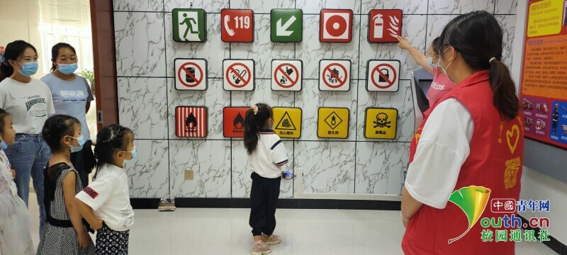图为志愿者教小朋友认识消防安全知识图片。 中国青年网通讯员 俞芳荣 摄。