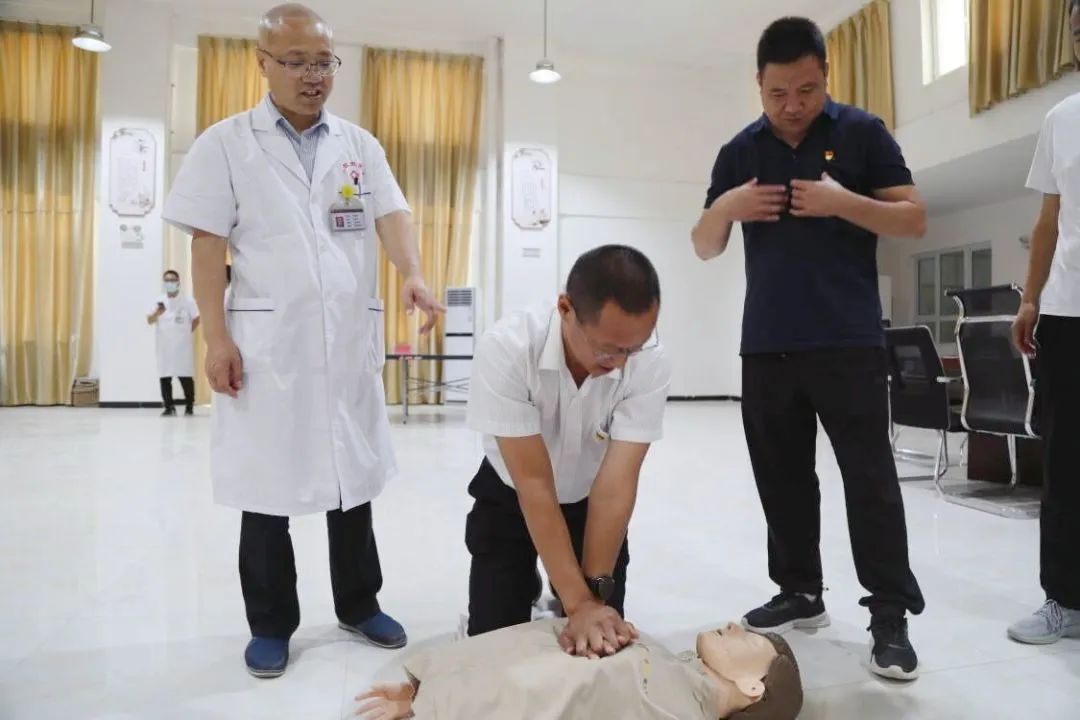 捐赠活动中,十一团党委常委杨继致欢迎词,他对阿拉尔医院表示由衷的感谢。随后,阿拉尔医院为十一团4个“访惠聚”工作队捐赠急救医药箱、急救药品等医疗物资。医务人员为工作人员开展心电图、血压、血糖测量等身体体检,并建立健康档案。阿拉尔医院急诊科主任向栋生现场开展了急救知识培训,详细讲解了4分钟黄金抢救时间的急救知识,现场演示心肺复苏、排除气道异物等技能,手把手指导大家在人体模型上练习,现场人员积极参与,认真聆听学习。