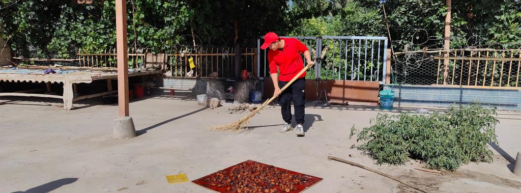信息工程学院“青春献礼二十大,助乡绘梦新征程”实践青年团以阿克苏市喀勒塔勒镇托万克阿勒迪尔村为目的地,开展了一场“常回家看看,老人需陪伴,暖空巢之心”的主题志愿活动。烈日当空,地面不知何时冒起了白烟。实践团队走进一户人家,看见一位老奶奶还在自己家院子里劳作,提着一个红色的桶,去浇水。院子里有晾晒的红枣,有冒出缕缕青烟的小火炉,一切都那么的井然有序。老奶奶停下手里的活,热情的迎接了实践团队。实践团队成员给老奶奶打扫院子。随后老奶奶带着实践团队走进了后院。当今,在国家乡村振兴的时代背景下,一块田地多用,称之为生态园。里面种着各种果树,各种蔬菜,后院里还养着鸭子。看着硕果满枝的果树,不知耕作的时候流了多少汗水。在后院里,实践团队参观了每个角落。很可惜的是,老奶奶是维族人,说的语言是维语。她说的话,大家都听不懂。她边说边用手比划,大概的意思是欢迎你们,摘李子吃。大家还是难以理解其意思。随后老奶奶,便在树上摘了李子,并且拿给在场每一个人吃。老奶奶面带微笑,给人一种熟悉的温暖。在陪伴老奶奶这些日子里,实践团队收获颇多,比如:其一,只有辛勤的耕作,才能收获肥硕的果实;其二,让自己忙碌起来,充实生活。陪伴老奶奶的这些日子里,可以清晰感受到老奶奶极其想念自己儿女,想和他们说说话。老奶奶是需要人陪伴的。当实践团队离开时,老奶奶一下子钻进菜园,摘了黄瓜,豆角。把摘来黄瓜和豆角送给实践团队。现如今留守儿童的问题正在慢慢好转,而空巢老人似乎被遗忘在老屋。因此常回家看看,是对老屋的一种爱,也是一种责任和义务。为了给老人留下纪念,记录下与老人在一起的时光,实践团队成员为老人拍摄了“最美夕阳照”,离开时,老奶奶驻立在门口,目送告别。