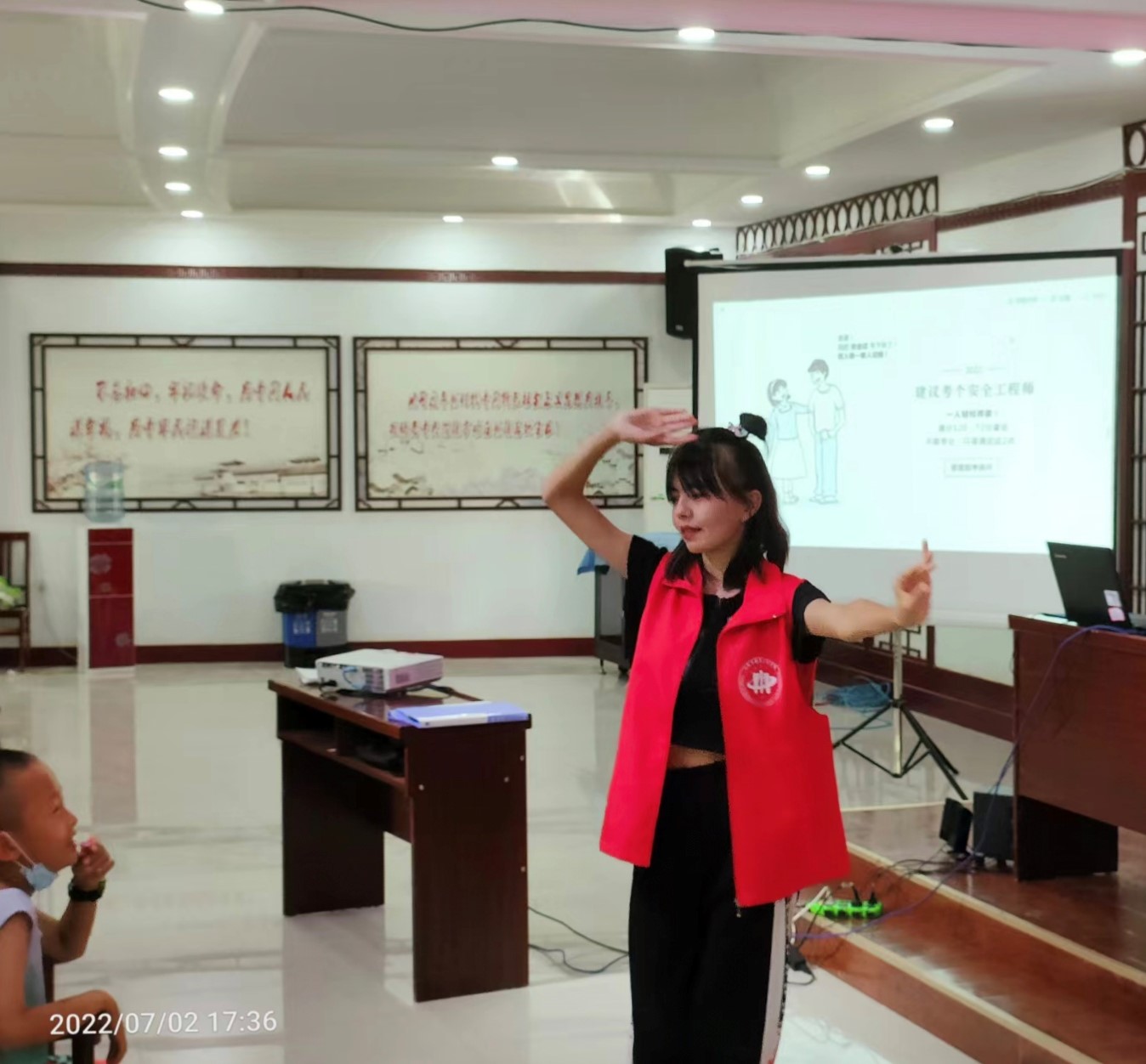团队成员为孩子讲述爱国故事