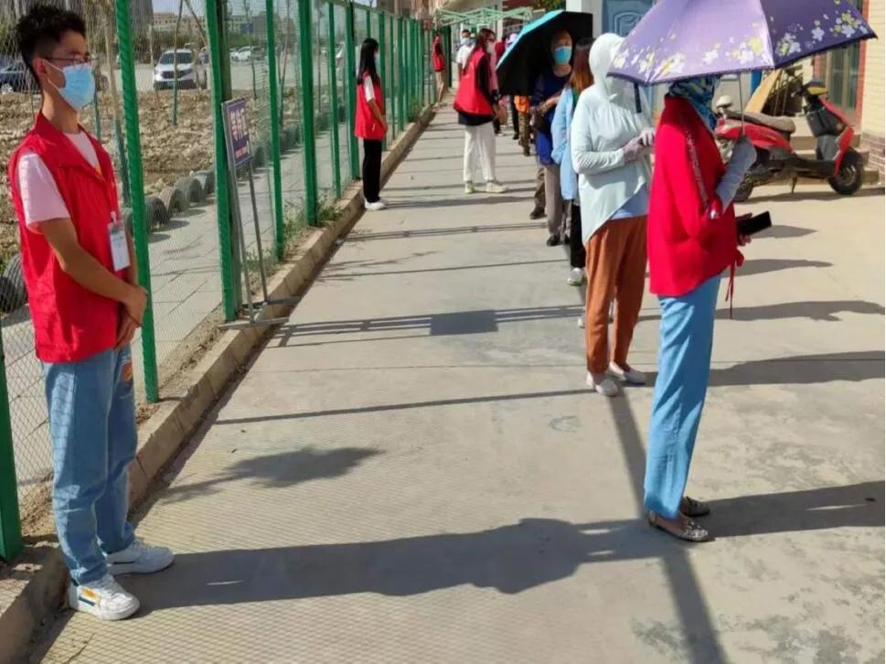 盛夏时节,暑气炎炎,但胡杨小队仍旧热情洋溢,全天就位于核酸检测现场,不叫苦、不喊累,用实际行动诠释了胡杨精神并赢得了社区居民的赞许。核酸检测是我们把好疫情防控大关的重要一环,胡杨小队为参与了此次志愿服务感到十分骄傲,为抗疫防控奉献一份自己的力量感到十分自豪。在今后社区服务工作中胡杨小队将始终用实际行动践行“为人民服务”的初心和使命。(文:司睿琪 黄帅 摄:张诗博 孙勃龙)