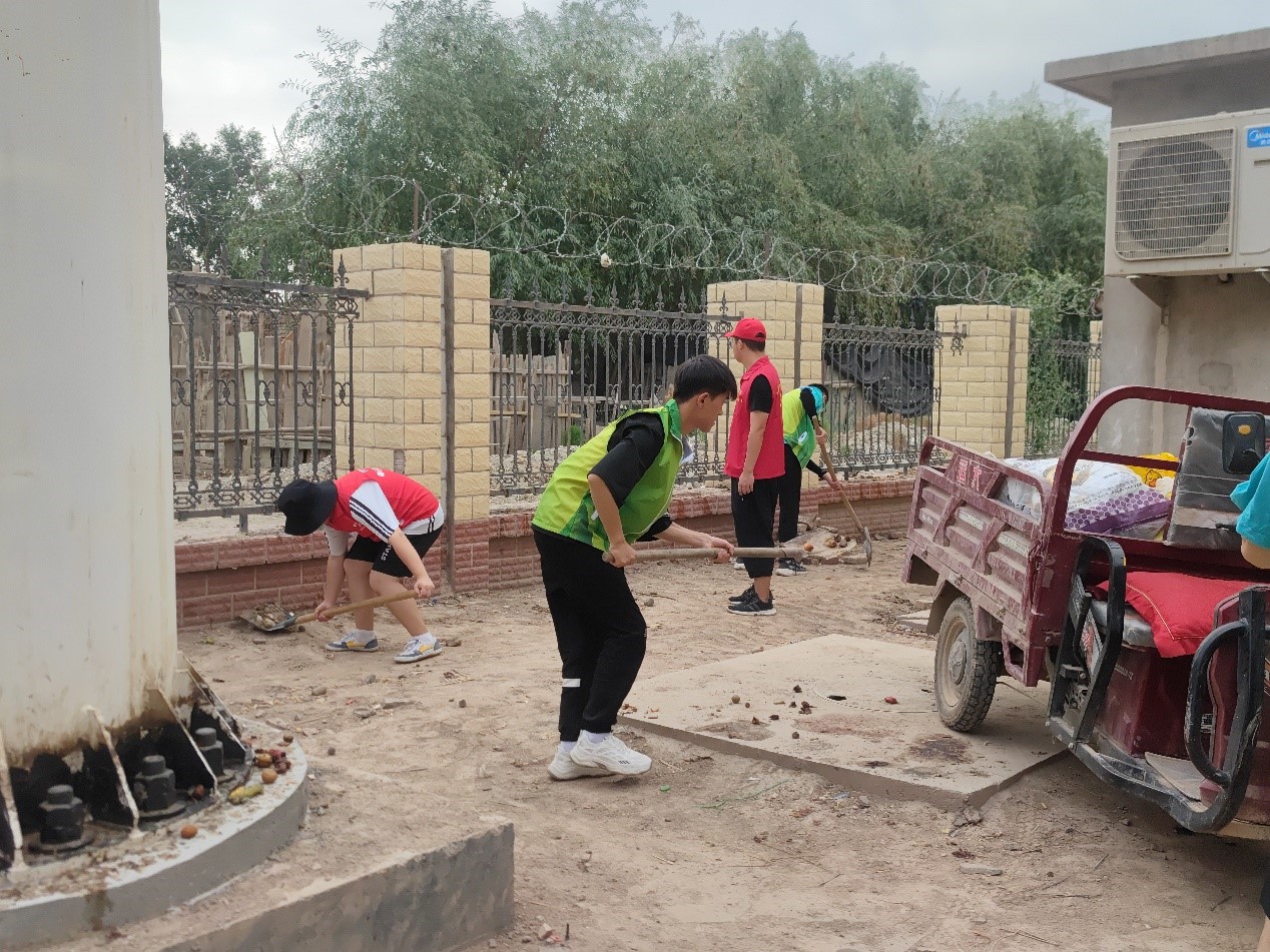 7月5日上午,实践团在团委办公室负责人朱耘庆的带领下去迎宾路社区与社区工作人员一起打扫卫生,清理地下室,并帮助疫情防控宣传。为建设美丽社区尽自己的绵薄之力。展现出胡杨学子“不怕吃苦,甘于奉献”的精神。