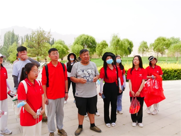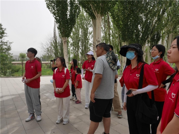 图为贾东老师为团队成员讲述克孜尔石窟的历史背景。中国青年网通讯员 杨晓婉 摄