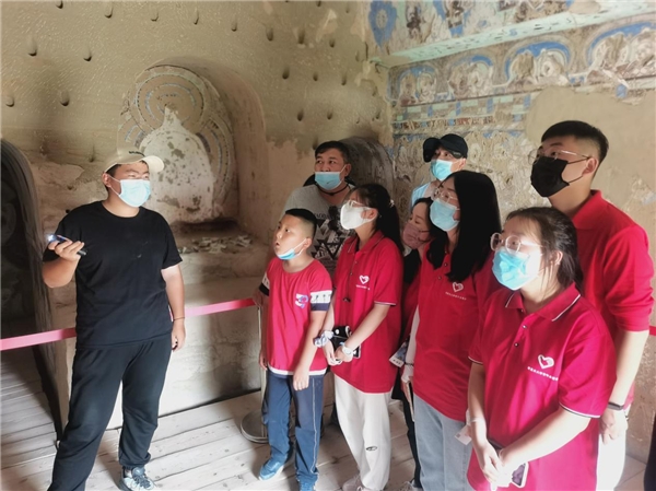 图为讲解员在讲解石窟上的壁画内容。中国青年网通讯员 刘旭东 摄