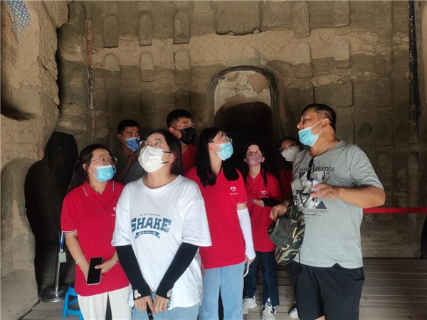 图为贾东老师在讲解石窟内容。中国青年网通讯员 王申奥 摄