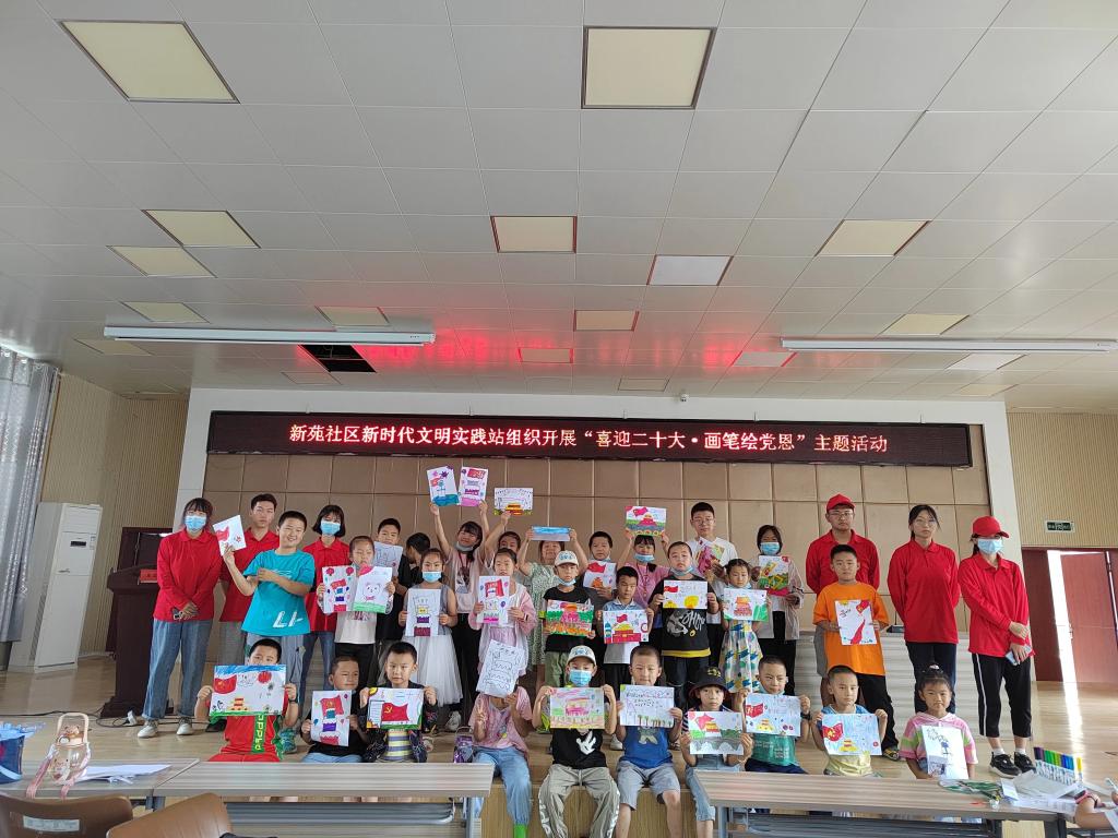 在绘画活动中,团队契合实际与建党71周年和召开的二十大相结合,前期多次沟通寻找适合、简单的画展图片,实际教授过程中,成员们也寓教于乐和小朋友打成一片。 通过为时七天的志愿活动,团队成员树立良好志愿者榜样意识,进一步丰富和提升社区文化内涵;身为新时代青年精神的传承者,文化的传播者,理想的践行者也不负人民期待、不负时代重托做着新时代志愿青年。