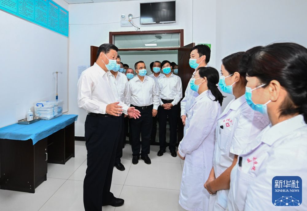 7月12日至15日,中共中央总书记、国家主席、中央军委主席习近平在新疆考察。这是14日,习近平在吐鲁番市高昌区亚尔镇新城片区新城西门村党群服务中心医务室考察。新华社记者 燕雁 摄