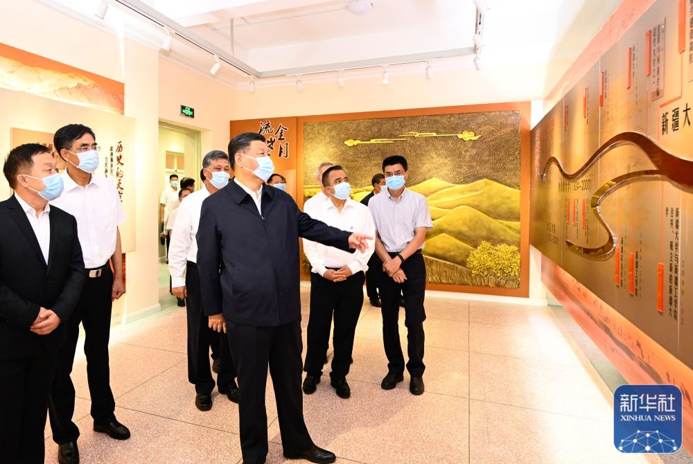 7月12日至15日,中共中央总书记、国家主席、中央军委主席习近平在新疆考察。这是12日下午,习近平在新疆大学参观校史馆。新华社记者 李学仁 摄