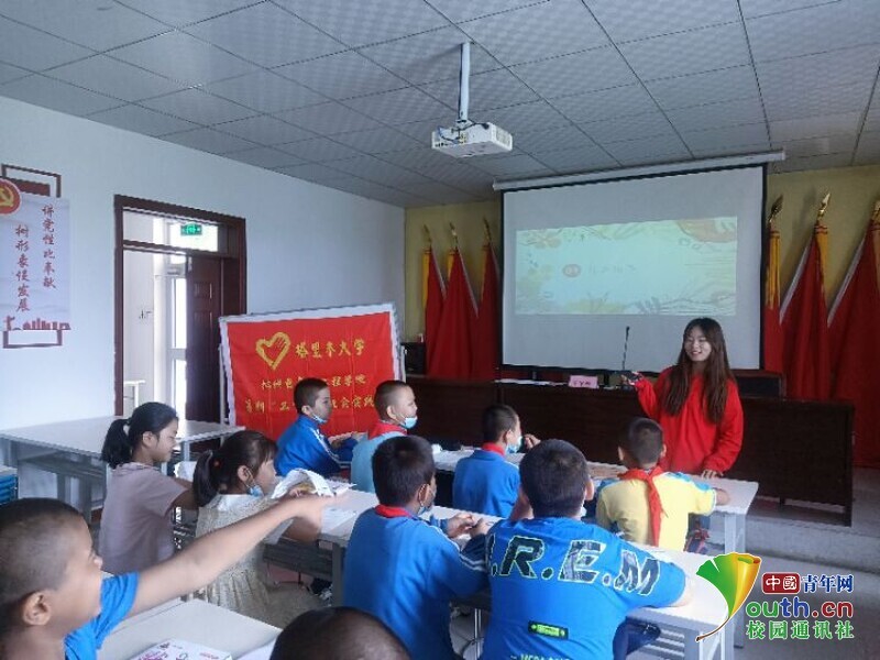 图为实践团鼓励孩子们担起中华民族伟大复兴责任。中国青年网通讯员 吴一平 供图