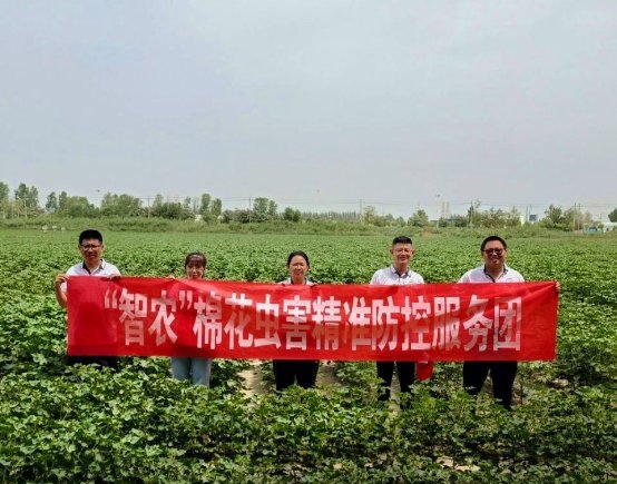 图为团队成员向种植户科普棉花虫害防治方法