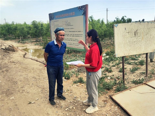 图为团队成员采访维族种植户