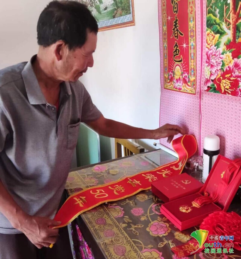 图为走访光荣在党50年老爷爷、抗战老兵家 中国青年网通讯员 董泽宁 摄