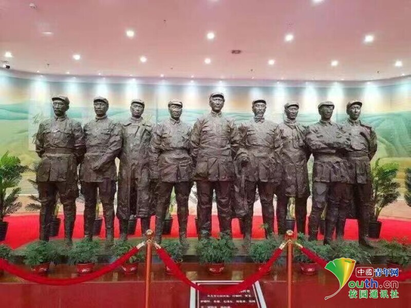 图为在长征胜利景园红军长征会宁胜利大会师的决策者、指挥者雕塑,学习伟大的长征精神。中国青年网 王晓冬 供图