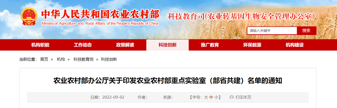 农业农村部公布了农业农村部重点实验室(部省共建)名单共遴选出80个重点实验室(部省共建)新疆(含兵团)5个实验室入选