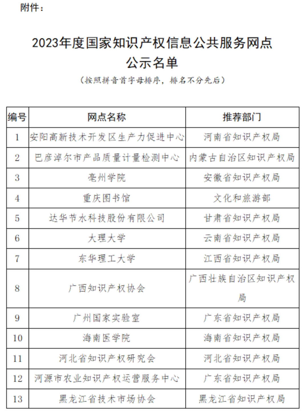 国家知识产权局拟备案41家机构为国家知识产权信息公共服务网点