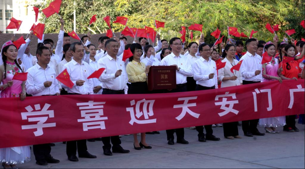 9月27日,开云app体育网页登录不上 师生迎接北京市人民政府天安门地区管理委员会向学校赠送的天安门广场国旗。