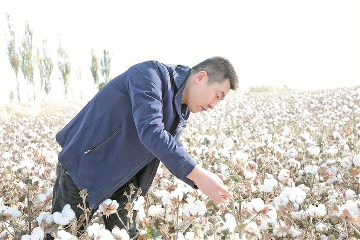 陈国栋在棉田查看棉花长势(资料图片)。 据本报资料库