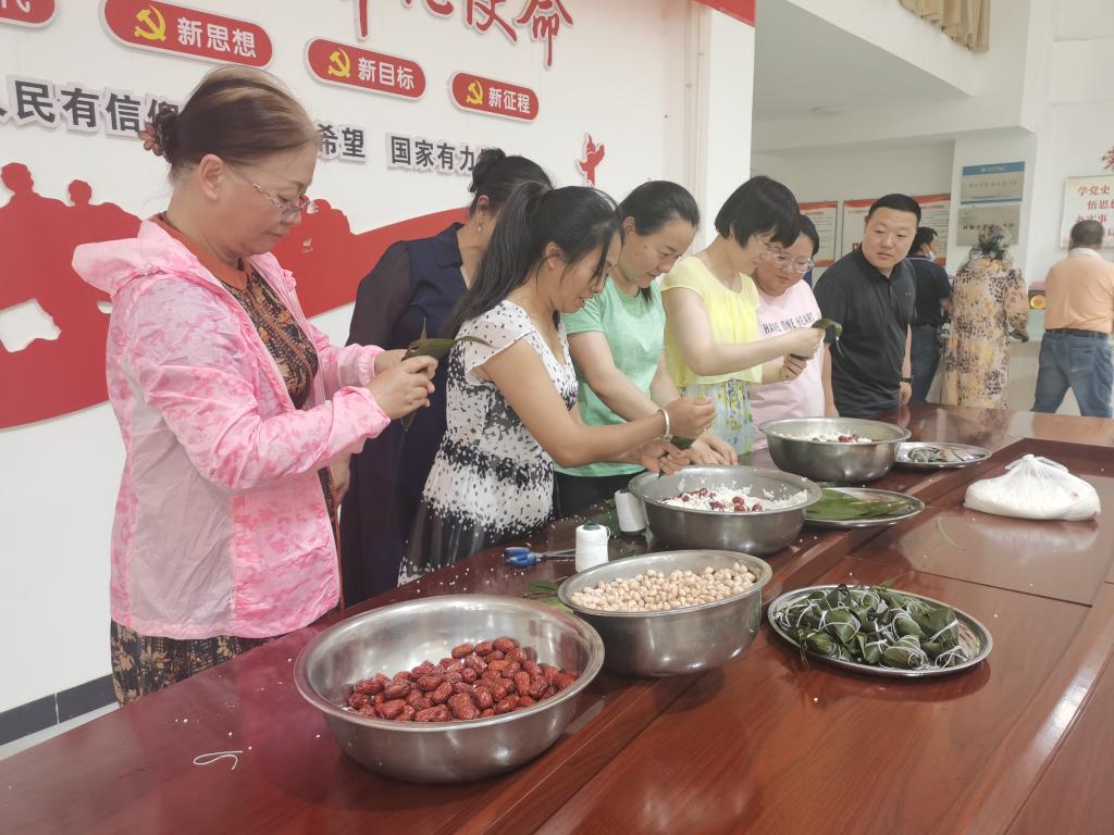 大家一起包粽子,其乐融融。“顶天立地”立鸡蛋、抢凳子、转运乒乓球、套公仔等四个趣味小游戏,更是把活动推向了高潮,财政局结亲干部与职工群众踊跃参加,气氛热烈。