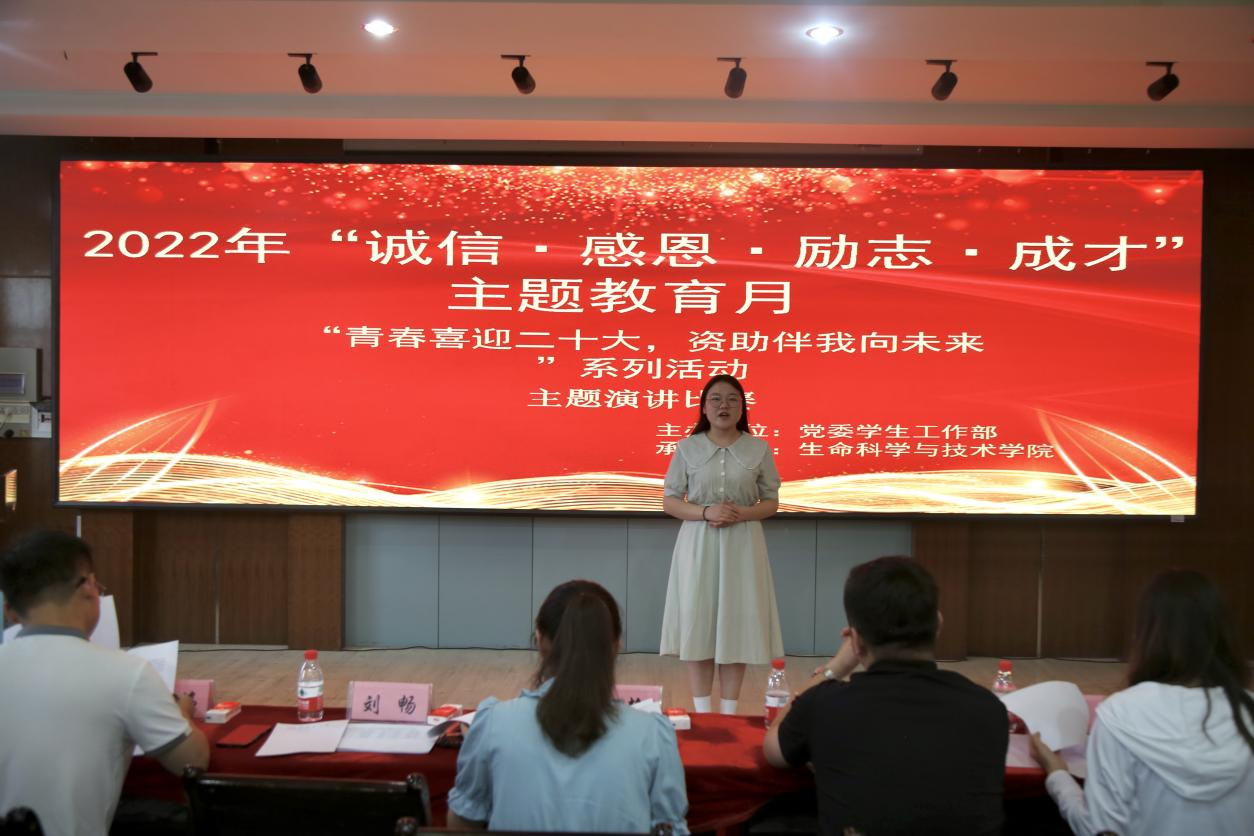 为加强学生思想政治教育,大力宣传国家资助政策和资助成效,强化学生知恩感恩、拥党爱国的情怀,培养学生勇于担当、坚持不懈、立志成才、传递爱心的优良品质,6月10日下午,党委开云足球app 部主办、生命科学与技术学院承办了“诚信 感恩 励志 成才”主题教育月系列活动之“青春喜迎二十大,资助伴我向未来”演讲比赛决赛。