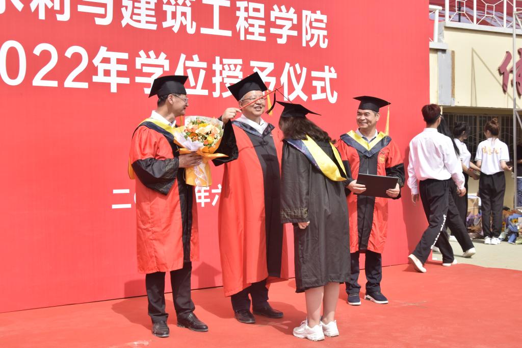 6月14日上午,水利与建筑工程学院2022年学位授予仪式举行。党委常委、副校长曲义勇,学院领导,毕业生班主任,全体辅导员,毕业生代表参加。