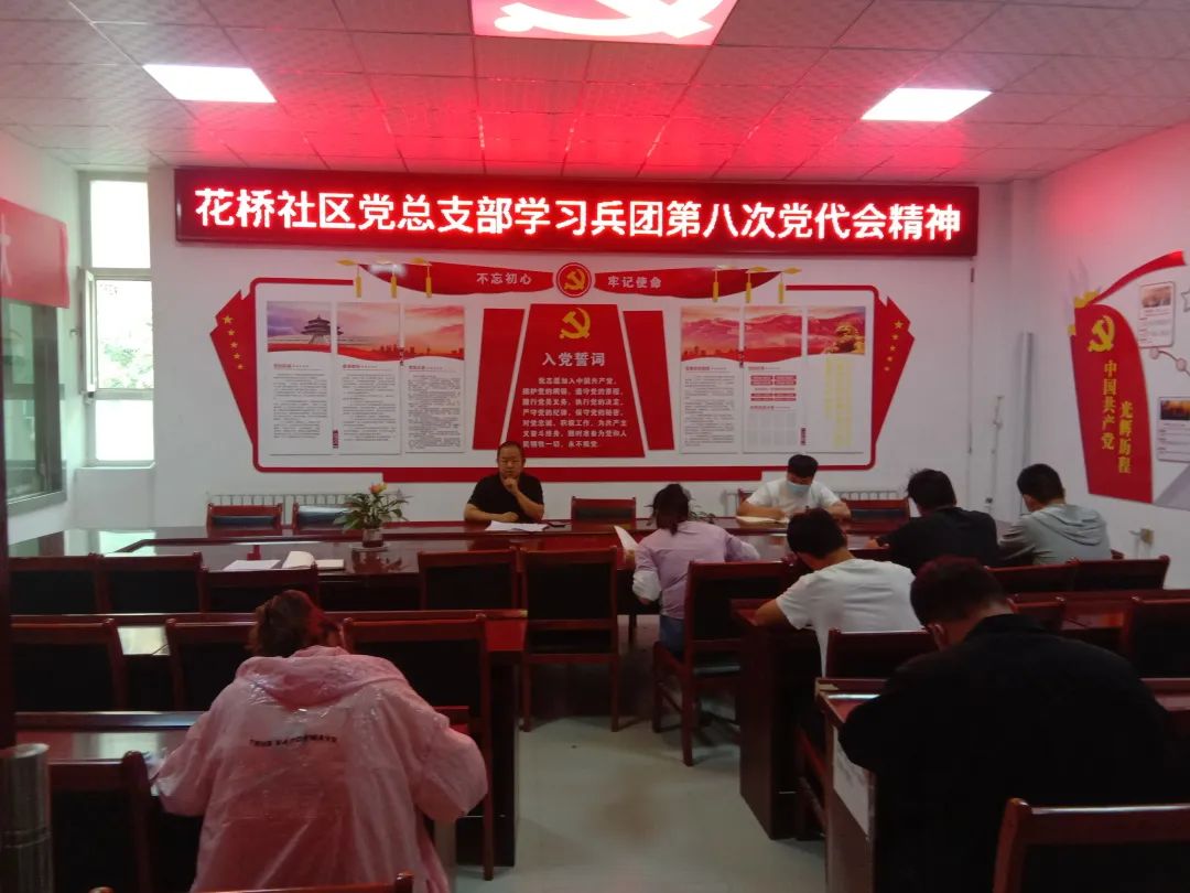十一团花桥社区党总支部通过组织召开学习贯彻兵团第八次党代会精神专题会议,传达学习党代会精神,动员社区全体工作者把思想和行动统一到兵团第八次党代会精神上来,以铸牢中华民族共同体意识为主线,着力在构筑各族群众共有精神家园上发力,使各民族人心归聚、精神相依,“像石榴籽一样紧紧抱在一起”,为十一团创建全国民族团结进步示范单位贡献社区力量。