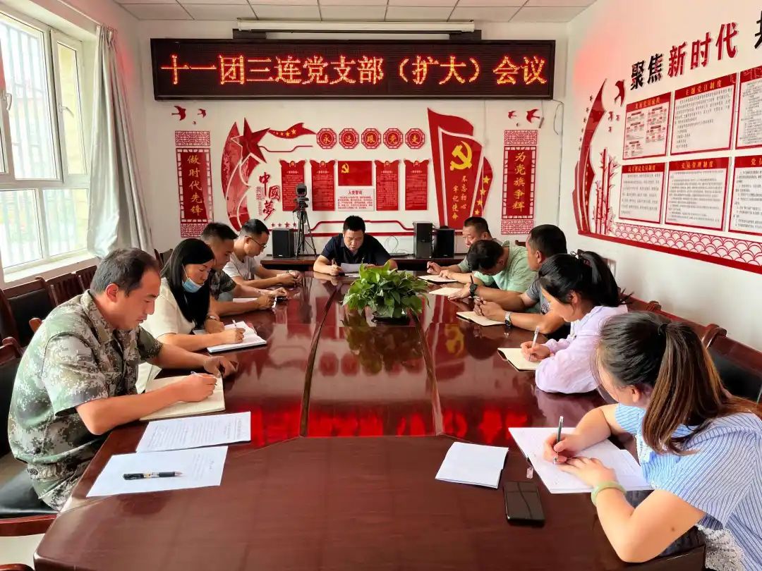 6月22日下午,十一团三连召开党支部(扩大)会议,组织连队“两委”和“访惠聚”工作队认真学习、深刻领会兵团第八次党代会精神,切实将思想和行动统一到党代会精神上来,将学习成果转化为带领职工群众增收致富的强大动力。