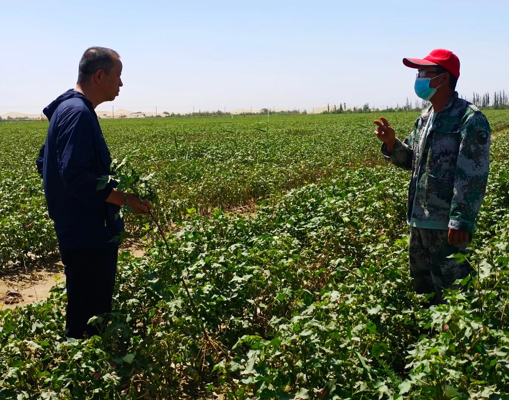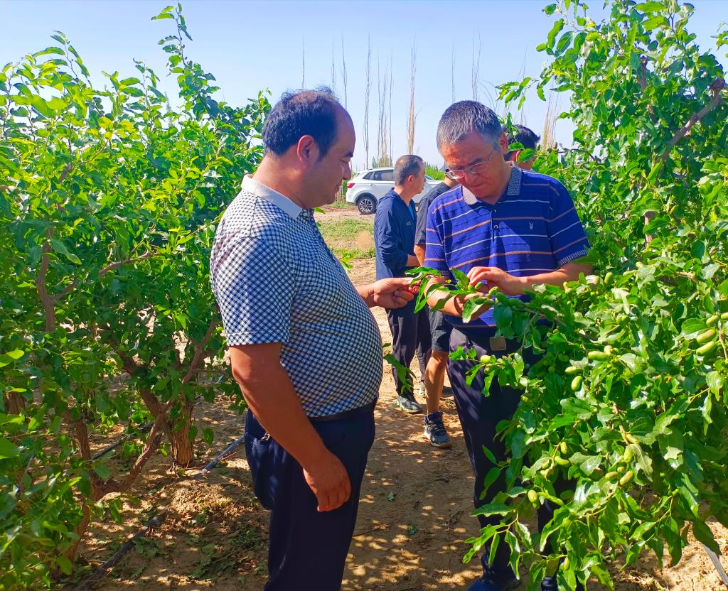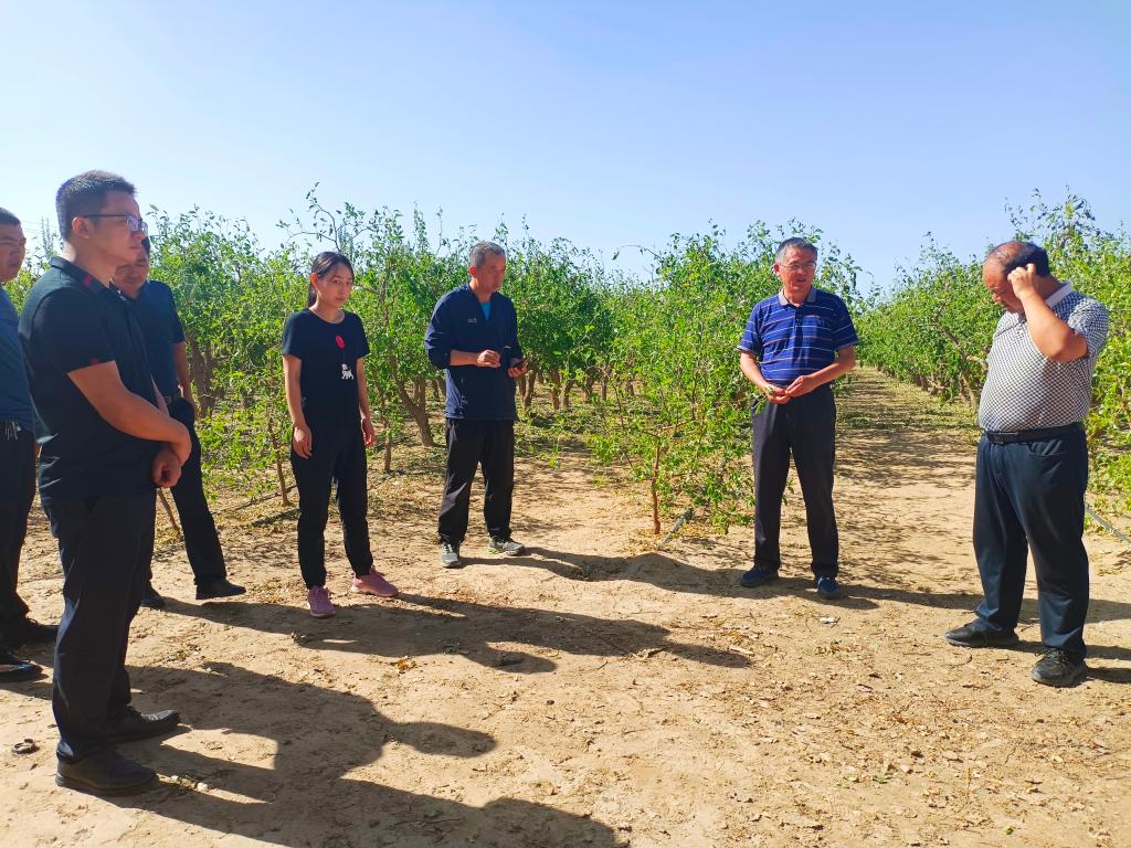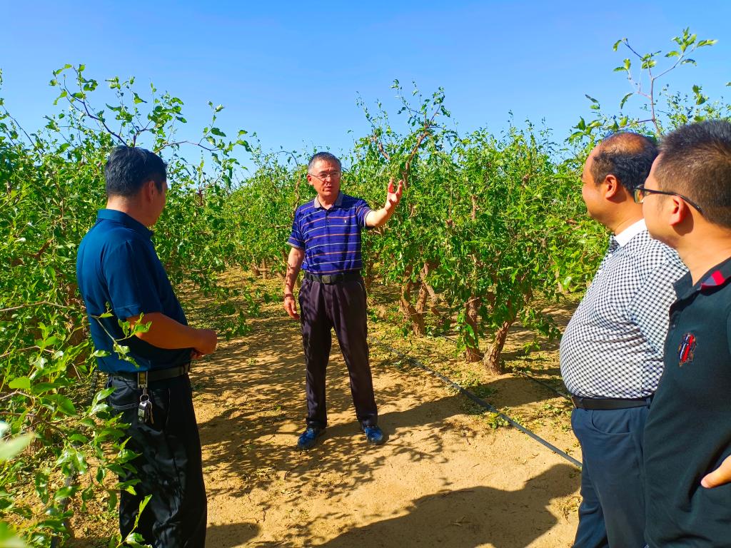 6月24日,果树专家王新建教授、农学专家胡守林教授,同224团党委常委、妇联主席刘娟,师市农村局调研员常俊明等一起进行实地走访,了解果树和农作物受灾情况。