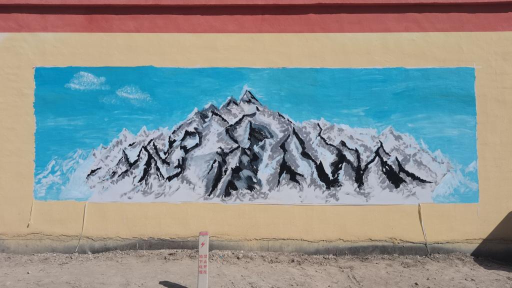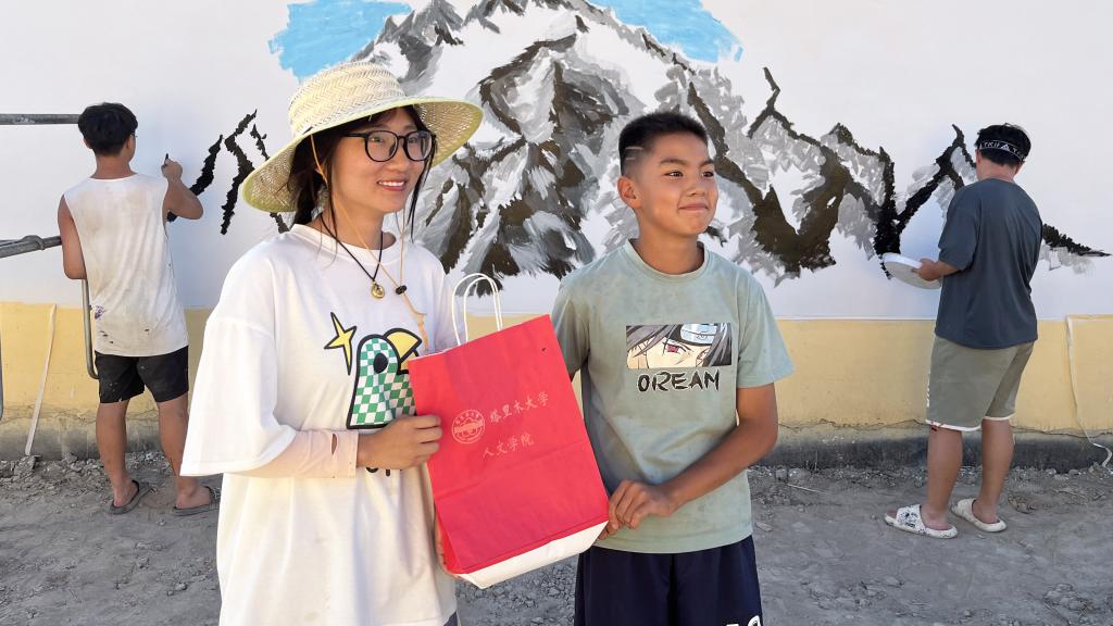 墙绘时,本地的少数民族小学生也积极加入,在创作实践中实现了“大手拉小手,团结一起走”的美好画面,也在孩子们心中根植了中华民族共同体意识。团队还向参与绘画的小学生赠送了画笔和颜料,祝愿他们快乐成长,早成栋梁。