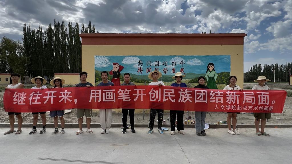 7月1日,我校起点艺术绘画团在第一师阿拉尔市托喀依乡5队开展暑期“三下乡”社会实践活动。人文学院姚涵文、赵会老师带队,通过墙绘的方式,把“中华民族一家亲,同心共筑中国梦”的理念送到基层,让民族团结成为可视化的美丽画卷。