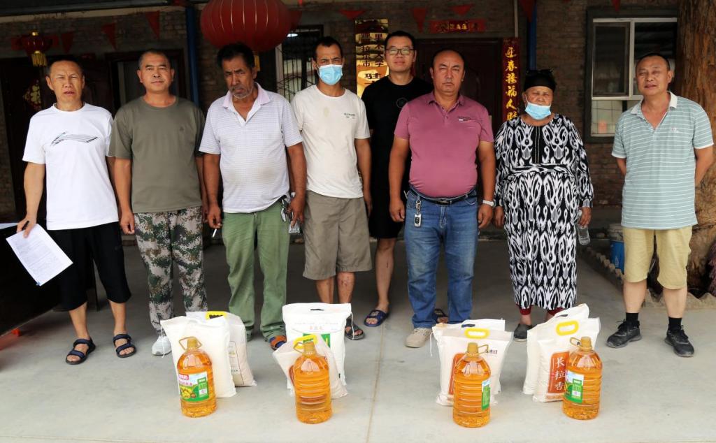 在古尔邦节到来之际,7月9至10日,十一团六连“访惠聚”工作队采购了面粉、大米等生活物资,走访慰问辖区维吾尔族职工群众,为他们送去了节日的祝福。