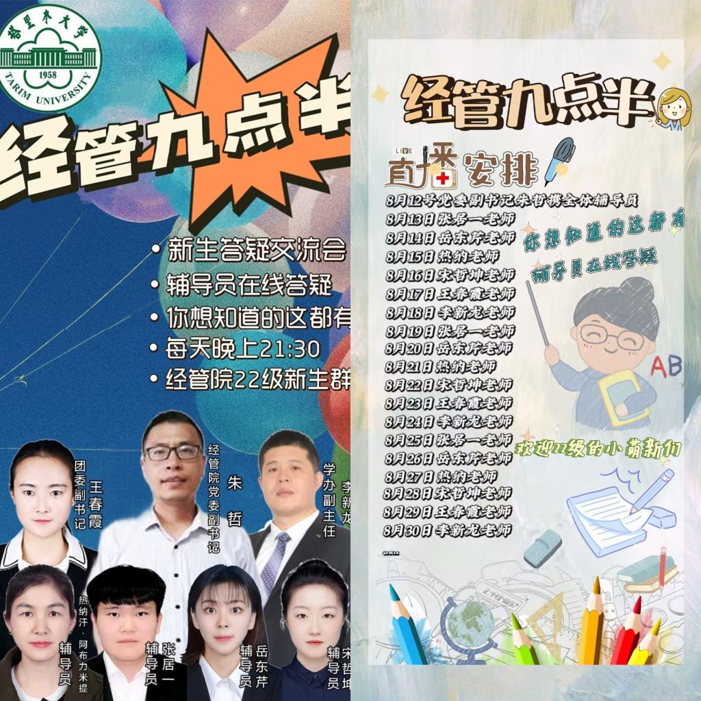 自8月12日起,经济与管理学院每晚在《经管九点半》直播间与我校2022级萌新们“云”上互动,宣传介绍学校发展历史和优秀成果,及时回答新生和家长的提问,为新生来校打通“最后一公里”。