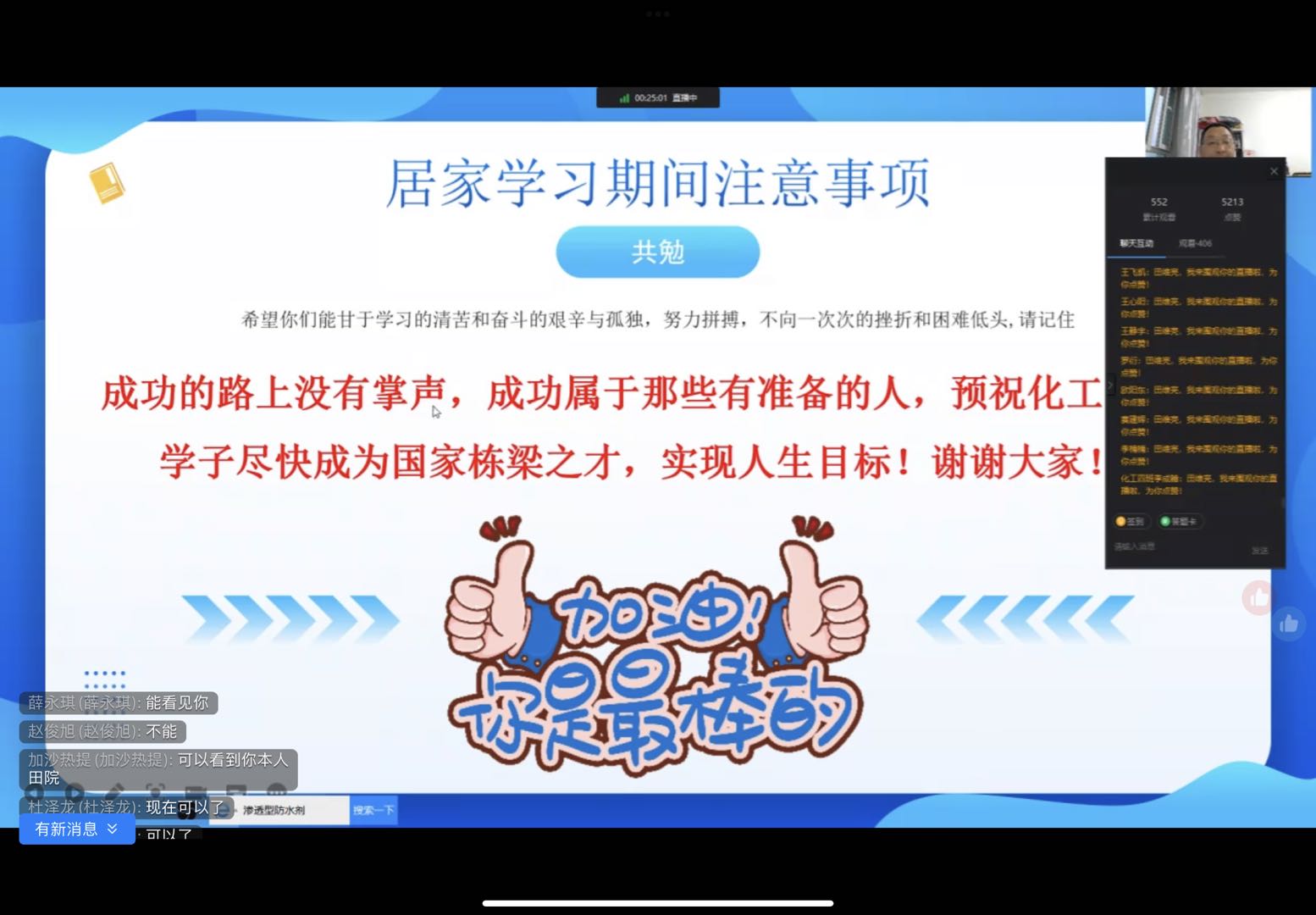 8月24日晚,化学化工学院举办“开学初师生网络见面会”,学院领导、教师代表,与23个班级500余名学生和家长“云上”开展交流互动,为秋季学期开学教学、管理、服务各项工作搭建平台、提供帮助。