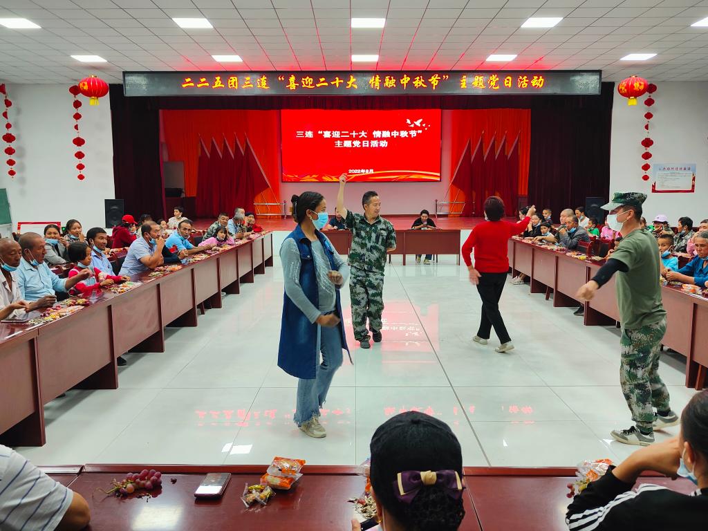 9月9日晚,我校驻二二五团三连“访惠聚”工作队在新时代文明实践站举办“喜迎二十大·情融中秋节”庆祝活动,激发各族干部群众对传统文化的认同与文化自信,多民族共度传统佳节。