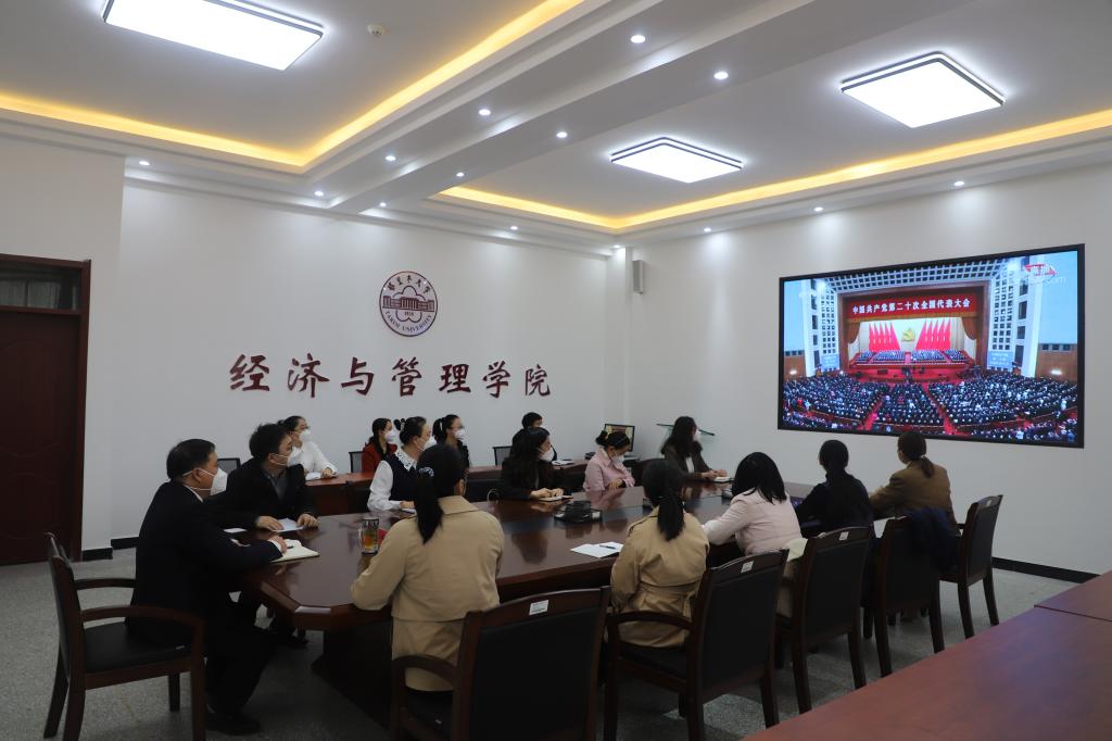 经济与管理学院全体师生共计3000余人通过手机、电视、电脑、多媒体等方式收看党的二十大开幕直播盛况。