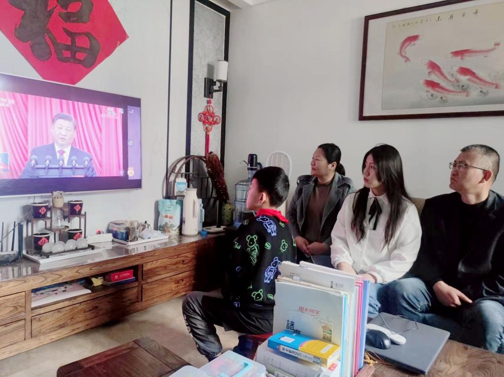 2022年10月16日上午,经管院研究生与家人一同收看党的二十大开幕直播盛况。