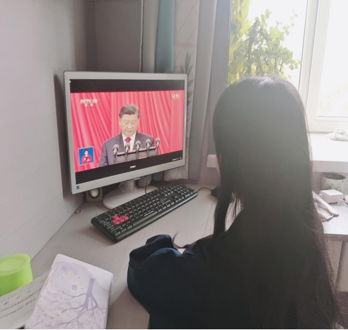 2022年10月16日上午,我校马克思主义学院(法学院)学生在家中收看党的二十大开幕直播盛况。