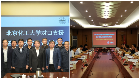 左图:2021年10月15日,党委书记赵光辉一行访问北京化工大学。